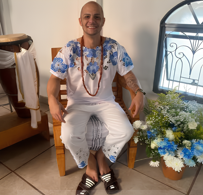 Em 2010, deu um passo ainda mais profundo em sua caminhada espiritual ao se iniciar para o Orisá Ossogiyan no Candomblé, tradição na qual já soma quase 16 anos de dedicação, iniciação e liderança. Hoje, é fundador de sua própria casa de Candomblé, estruturada com todos os preceitos, fundamentos e respeito à ancestralidade, guiando diversos filhos espirituais em sua missão de espalhar o Àṣẹ e o conhecimento verdadeiro dos Orisás.